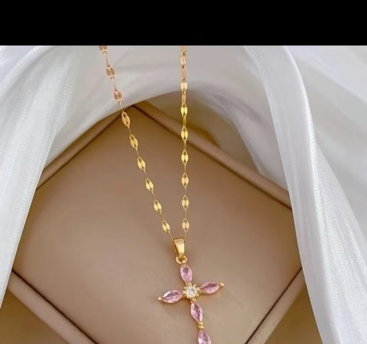 Elegant Cross Pendant Necklace Gemstone Daily Wearing